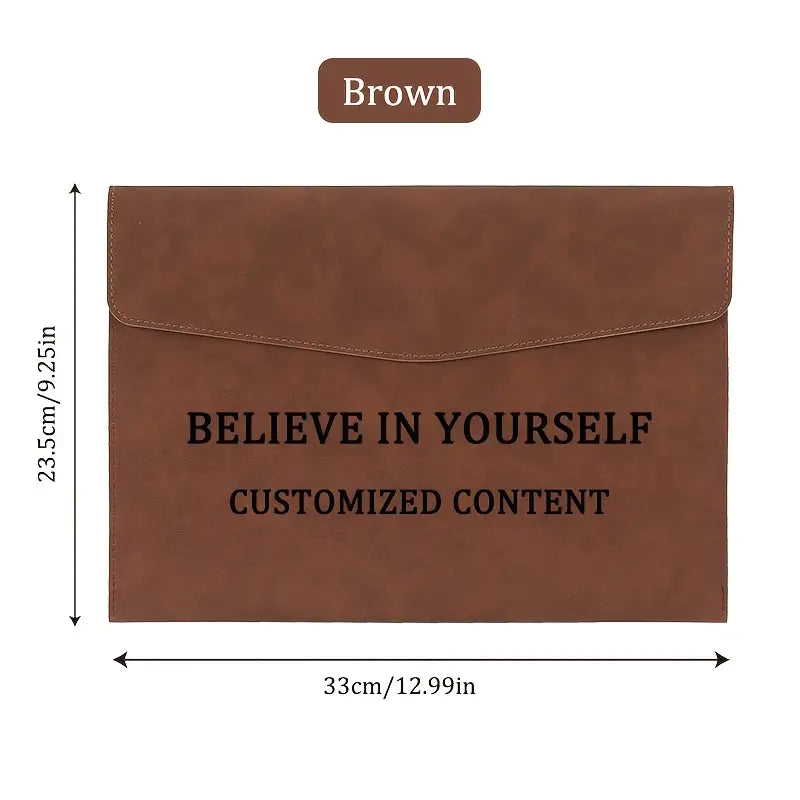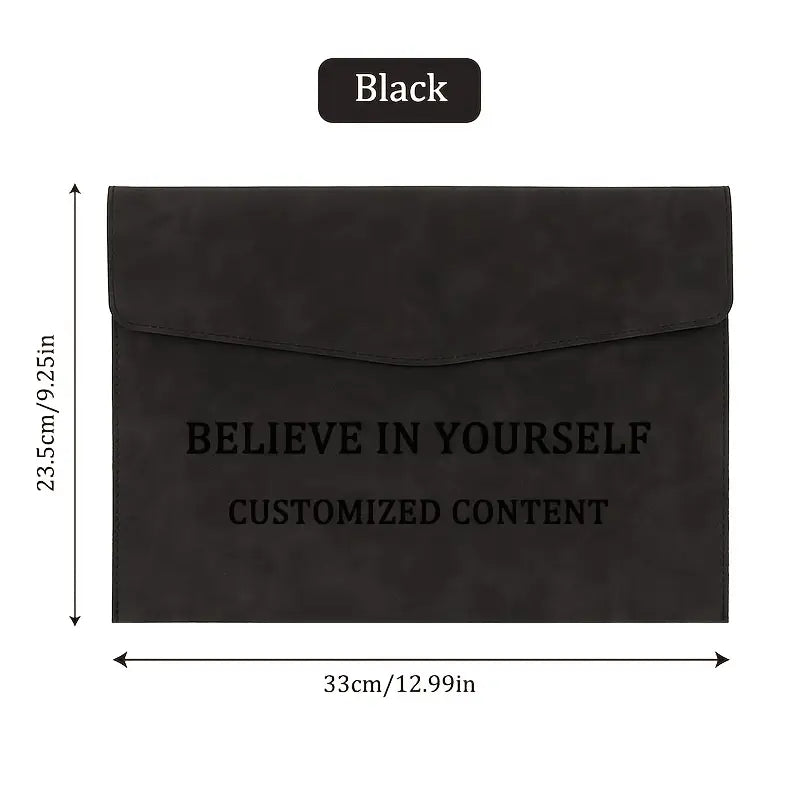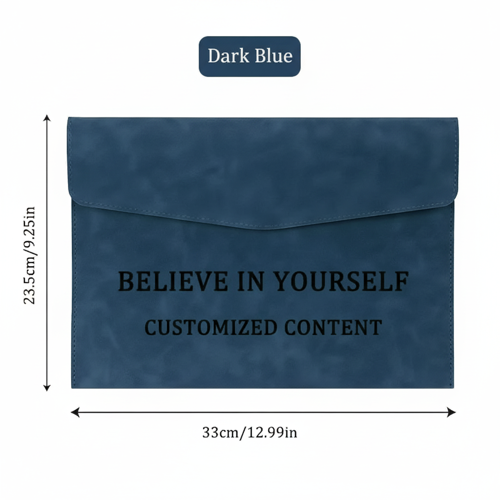 Stay organized in style with the Personalized A4 Document Organizer. Crafted with premium materials and a sleek waterproof finish, this folder features a secure magnetic closure to protect your important papers. Its large capacity design fits A4 documents, notebooks, business cards, and even small devices, making it ideal for both office and school use.